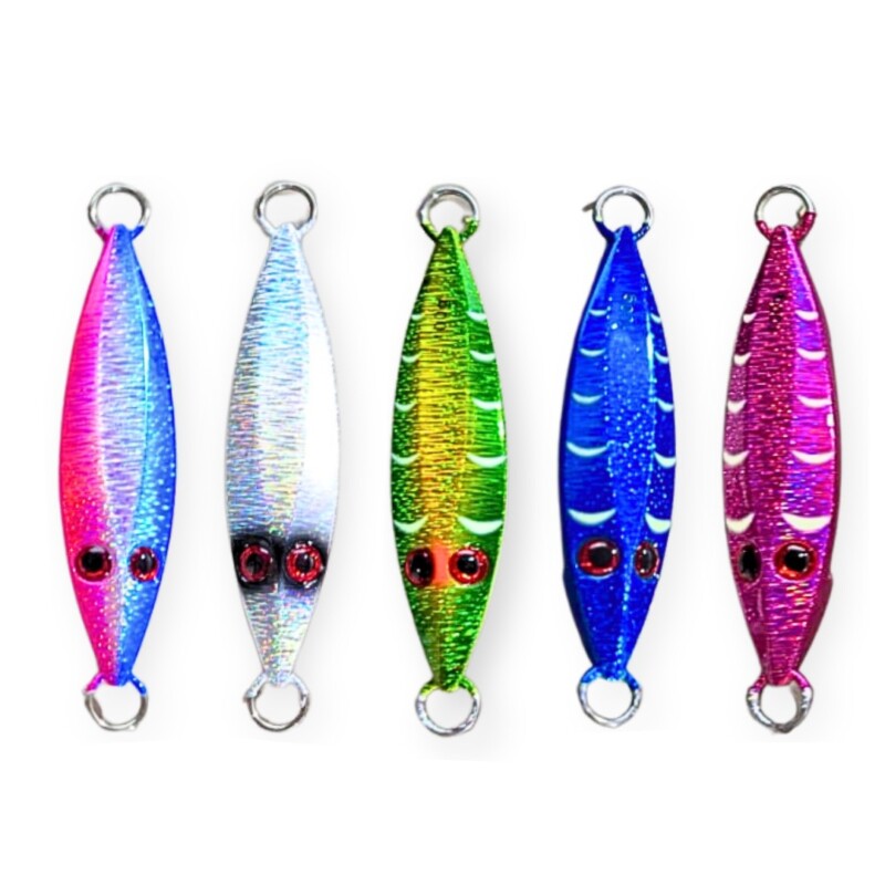 A isca TBYE-14-150 foi criada para maximizar a atratividade em pescarias de alto mar. Seu formato semelhante a um pequeno peixe, combinado com o efeito holográfico refletivo, simula o brilho e o movimento de uma presa real, chamando atenção imediata de predadores mesmo em grandes profundidades.