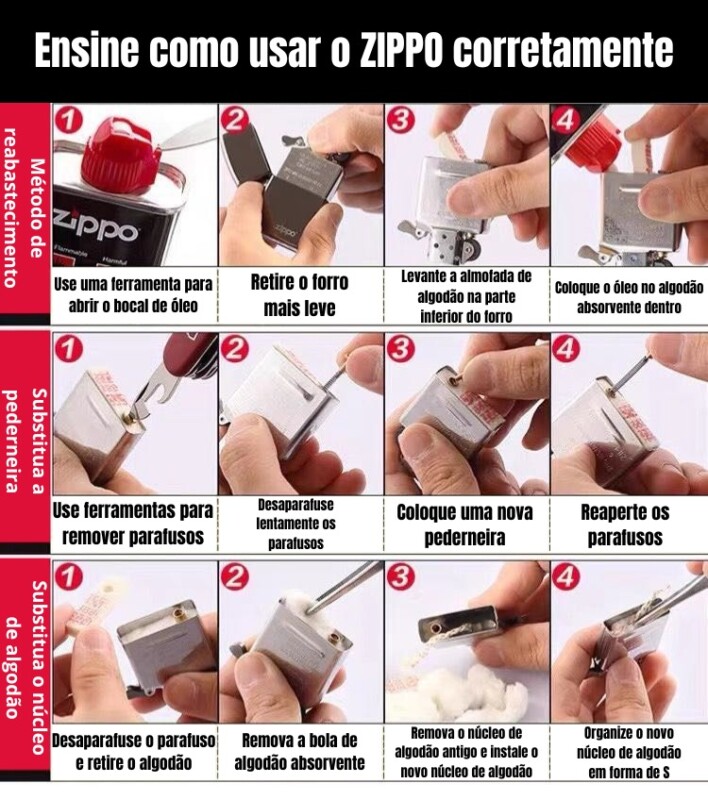 Pedras Isqueiro Zippo,6 Unid + 3 Pavio
