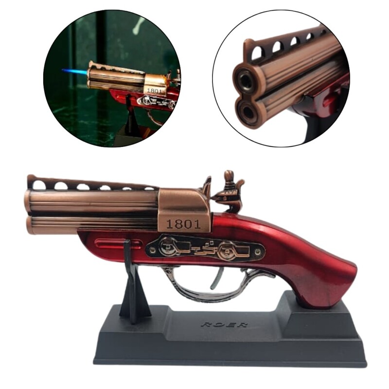 Isqueiro Maçarico Design Garrucha Duas Chama em Metal e Plástico 1801