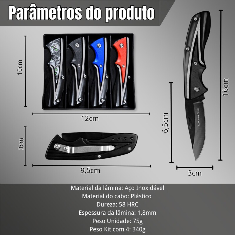 Kit com 4 Canivetes Abertura Manual Para Camping Luatek SLK-D53