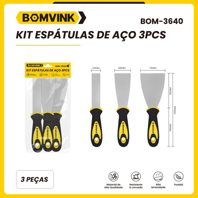 Kit Espatulas de Aço 3 Peças BOMVINK BOM-3640 quantidade