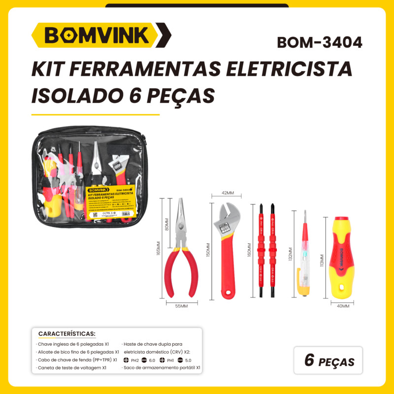 Kit Ferramenta Eletricista Isolado 6 PÇS BOMVINK BOM-3404 quantidade