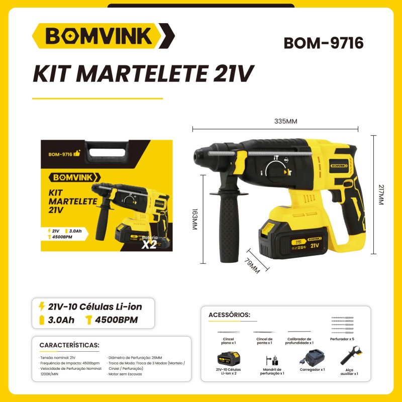 Kit Martelete 21V BOMVINK BOM-9716