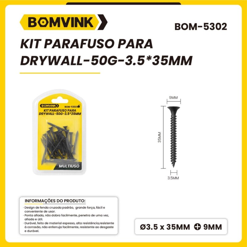 Kit parafuso para drywall-50G-3.5*35MM BOM-5302