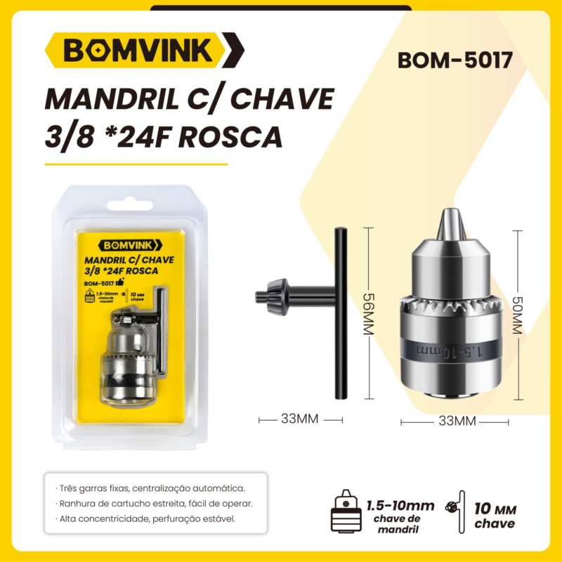 Mandril C/ Chave 3|8 x 20f Rosca BOMVINK BOM-5017 quantidade