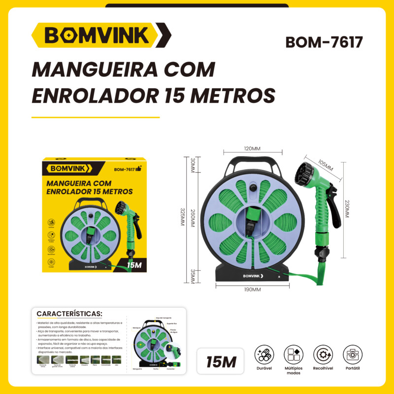 Mangueira com Enrolador 15 Metros BOMVINK BOM-7617 quantidade