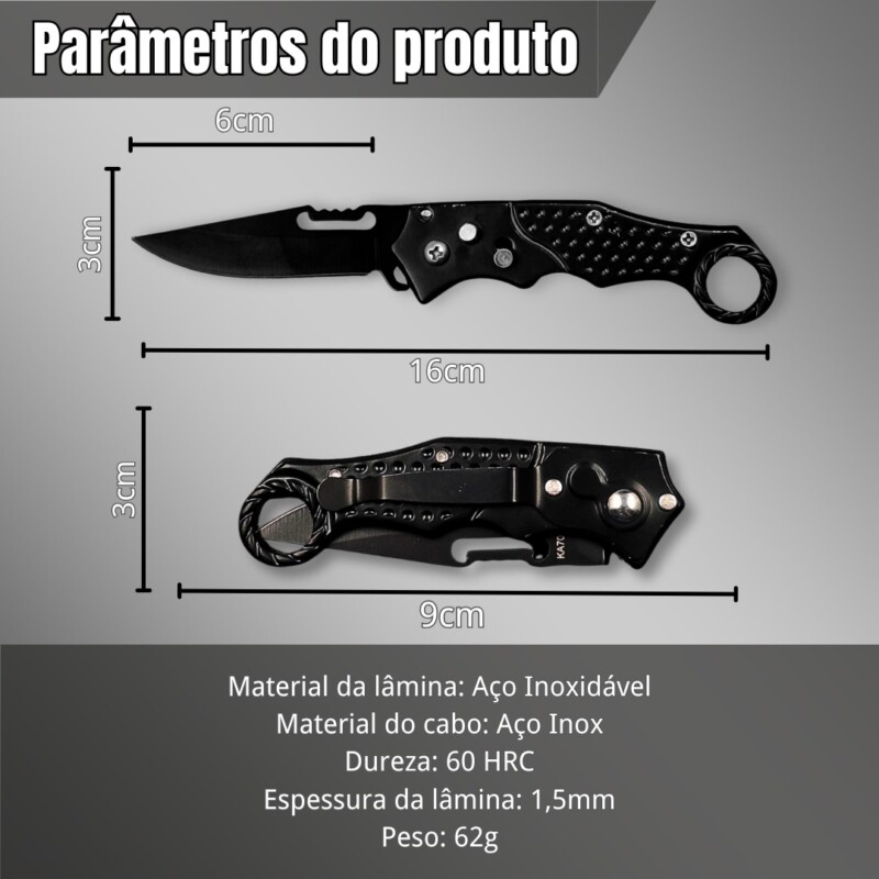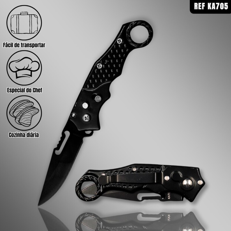 Mini Canivete Automático Saque Rápido Tatico Militar Preto KA-705