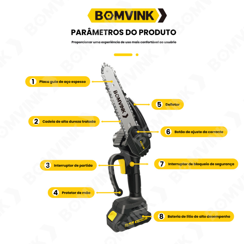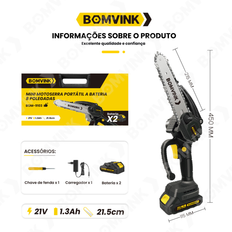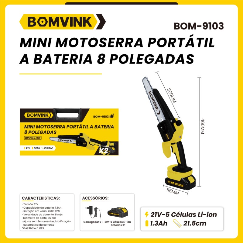 Mini Moto Serra Portátil a Bateria 8 Polegadas BOMVINK BOM-9103