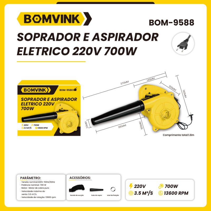 Soprador e Aspirador Elétrico 220VC 700W BOMVINK BOM-9588 quantidade