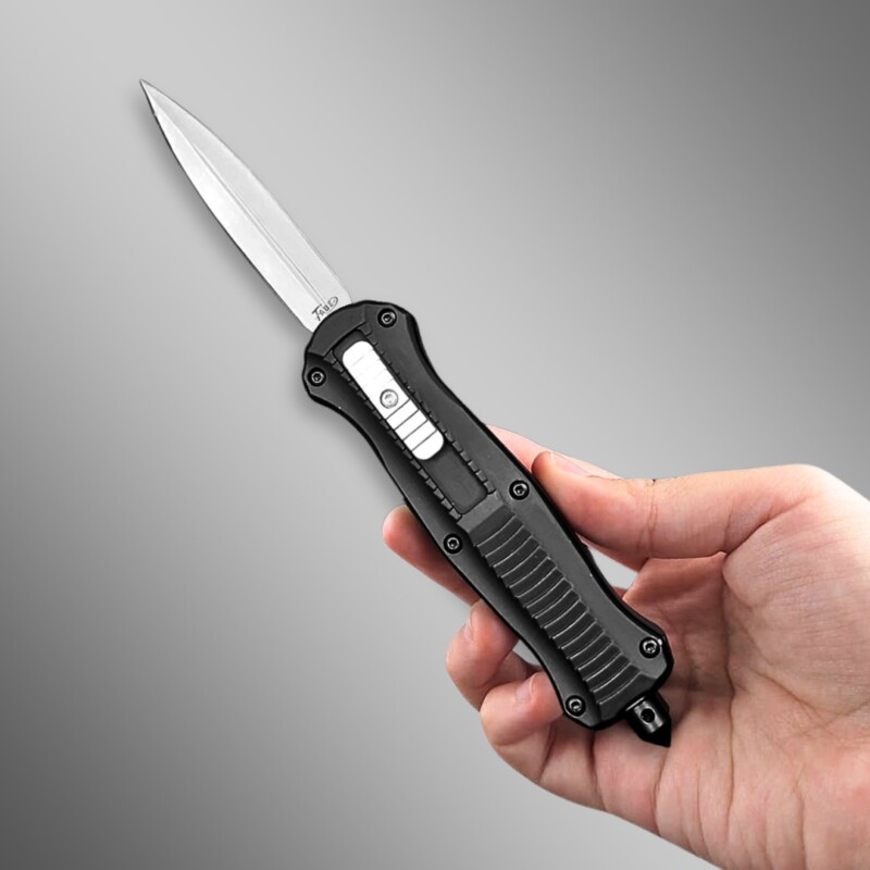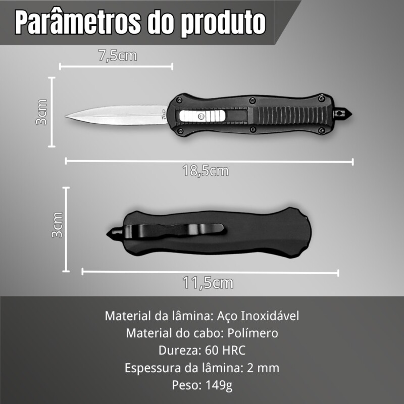 Canivete Tático Automático Toque Emborrachado 18,5cm com Clip e Quebra vidros ZC-07M